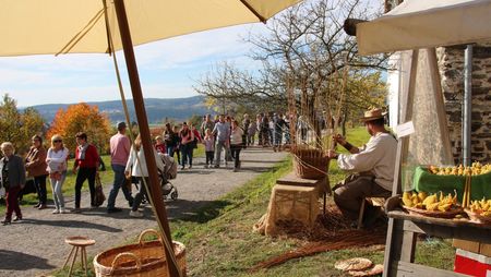 Rund 40 Marktstände verteilen sich auf dem gesamten Museumsgelände in den historischen Dörfern und der weitläufigen Landschaft. Hier findet man alles, was man für die kalte Jahreszeit braucht – beispielsweise Strickwaren, herbstliche Dekoration oder etwas für die Hausapotheke. Aber auch kulinarisch kommen die Besucher auf ihre Kosten. Gebrannte Mandeln, Liköre, Backwaren aus dem Holzofen, Nudeln oder Käsespezialitäten: die Auswahl ist groß. Auch Anbieter aus Tschechien bieten ihre Produkte feil.