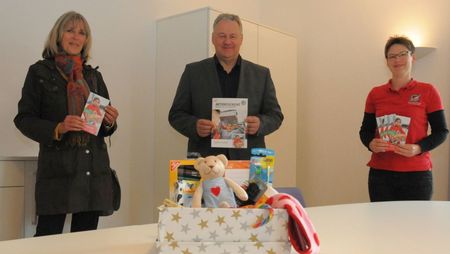 AMBERG-SULZBACH. Putzige Kuscheltiere, Buntstifte und Leckereien lugen aus den weihnachtlich geschmückten Päckchen, die das Landratsamt Amberg-Sulzbach demnächst in alle Welt verschicken wird. Zum 25-jährigen Jubiläum von „Weihnachten im Schuhkarton“ unterstützt Landrat Richard Reisinger die christliche Hilfsaktion wiederum als Schirmherr - zum vierten Mal in Folge - und kündigt an, 25 Geschenkkartons auf die Reise zu schicken. „Ein Vierteljahrhundert strahlende Kinderaugen zu Weihnachten, die sonst vielleicht traurig wären. Dafür engagieren wir uns gern“, erklärt Reisinger das Engagement seiner Behörde im Jubiläumsjahr. Indes hoffen die Organisatorinnen Jedida Strobel und Gerda Zimmermann, die in Vertretung von Ulrike Straub mit zum Auftakttermin ins Landratsamt kam, auf viele Nachahmer in der Region.