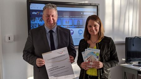 Ganz besonders stolz zeigten sich der Landkreischef und die Volkshochschulleiterin noch über das neu erworbene Zertifikat für das eingeführte Qualitätsmanagement, das ab diesen Jahr verpflichtend für die alle Volkshochschulen vorzuweisen ist. Ein erstes Ergebnis ist das neu erarbeitete Leitbild der Bildungseinrichtung, dass ebenso auch im Programmheft abgedruckt ist.
