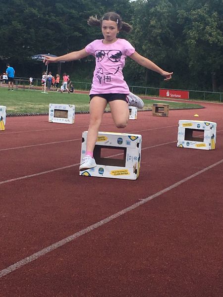 Nach dem gemeinsamen Aufwärmen durften die Schüler an 10 Stationen ihr vielseitiges Können unter Beweis stellen. Eine Delegation unserer 110 Schüler durfte auch Mut beweisen, zum Beispiel Ausprobieren der Disziplin Stabhochsprung. Verschiedene Stationen wie Wassertransportieren, Standweitsprung, Fahrradreifenweitwurf, Hindernislauf oder Jump & Reach machten allen einen enormen Spaß. Das konnte man auch an den begeisterten Gesichtern der Kinder ablesen. Nachdem sich alle ausreichend ausgepowert hatten, bekam jeder Schüler noch eine Erinnerungsurkunde mit nachhause.