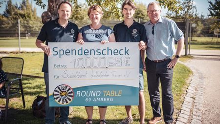 „Zu spenden ist das eine, ein sillvolles Projekt zu unterstützen das andere“, erklärte der Präsident von Round Table Amberg, Dr. Michal Rogenhofer. Aus dem erfolgreichen Verlauf des Entenrennens, der Christbaumversteigerung und der Hexennacht war es den Tablern möglich, heuer eine Rekordspende von 10.000 Euro an den SkF zu übergeben. OB Michael Cerny beließ es nicht bei Dankesworten an die Adresse des SkF und der Tabler sowie an die Pflegeeltern, sondern unterstrich seine anerkennenden Worte auch mit der Überreichung eines Spendenschecks.