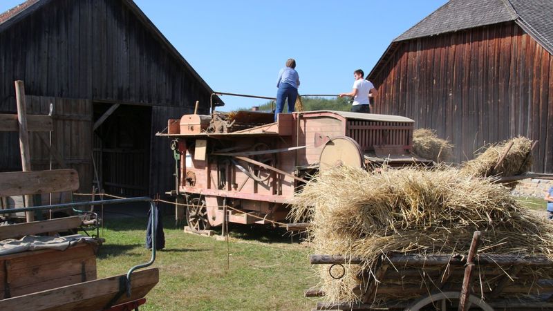 Getreide dreschen im Freilandmuseum Neusath / ...