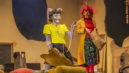 REGENSBURG. Ganz schön chic schaut sie aus, diese Stadtkatze im Minirock und hohen Schuhen. Der alte Hund könnte sich an ihr ein Beispiel nehmen, statt nur in Jogginghose rumzulungern… Wobei, egal ob gestylt oder schmuddelig, sie sitzen alle im gleichen Schlamassel, die vier Tiere in Die Bremer Stadtmusikanten. Sie müssen alle schnell weg von zu Hause.